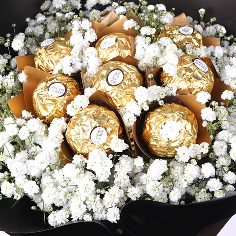 Ferrero Rocher (9 stalks), White Baby Breath