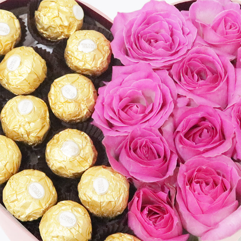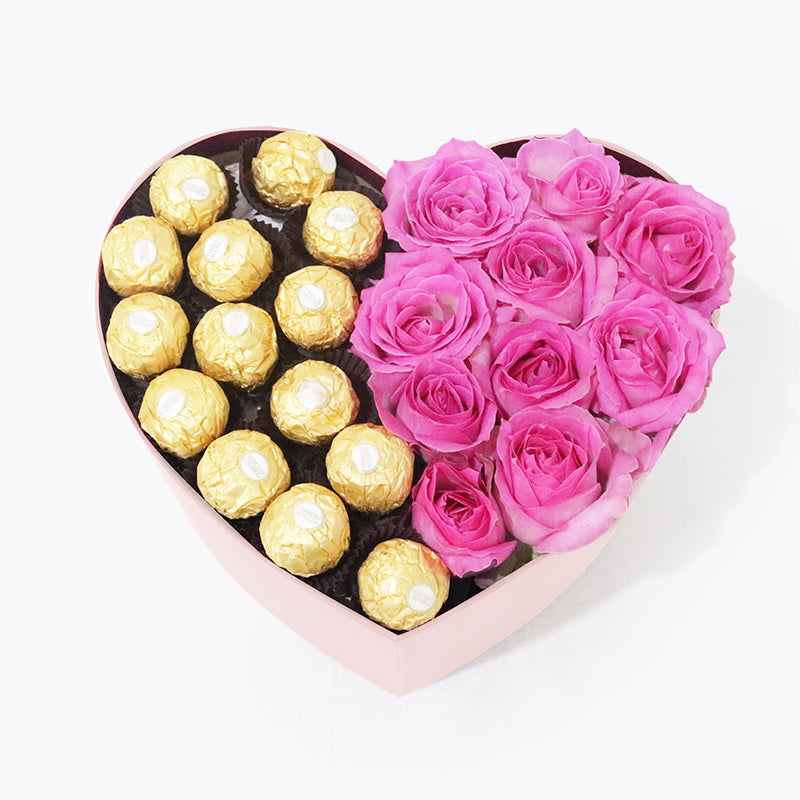 Our Love Box is an aesthetically pleasing arrangement that beautifully combines the softness of pink roses with the sweet indulgence of Ferrero chocolates. This carefully curated box is not just a gift, but a visual treat that symbolizes love and admiration. It’s the perfect choice for any occasion that calls for a touch of love and sweetness. Enjoy this lovely blend of beauty and taste!