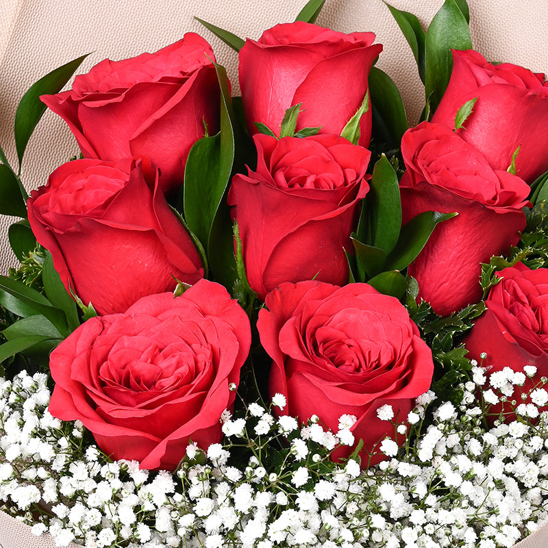 Red Roses (9 Stalks), White Baby Breath