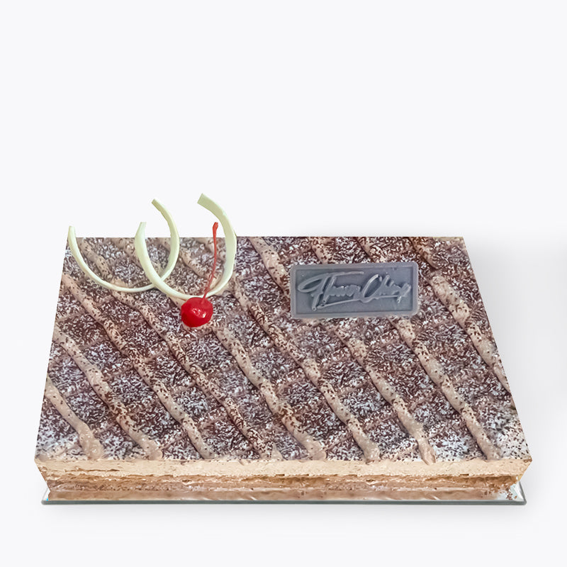 An authentic Italian cake cheese layered vanilla sponge soaked in coffee and dusted with chocolate powder on the top.
